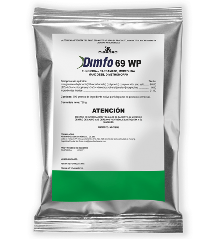 Es un fungicida sistémico a base de dimethomorph y mancozeb 690. Pertenece a la familia de las morfolinas y carbamatos. Dimethomorph actúa bloquenado todas las fases que intervienen en la formulación del tubo germinativo y de los haustorios. Mancozeb induce inhibición enzimática múltiple, afecta a la respiración celular, inactiva grupos sulfidros. Con formulación de polvo mojable (WP).